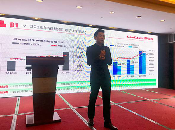隨后深圳道可視科技有限公司銷售總監(jiān)邢偉發(fā)表了《道可視2018年度市場(chǎng)總結(jié)及新年計(jì)劃》主題演講,他表示2018年道可視銷售增長(zhǎng)率同比增長(zhǎng)31.11%,會(huì)員店數(shù)量開(kāi)發(fā)2128家,整體表現(xiàn)還是非常不錯(cuò)。