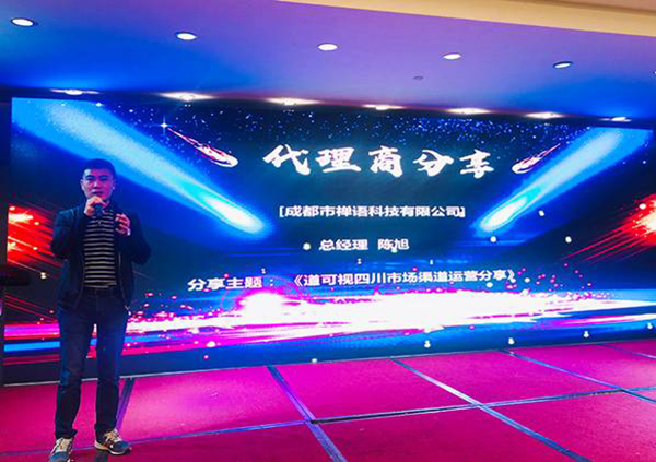 ▲道可視代理商——成都市禪語(yǔ)科技有限公司總經(jīng)理陳旭先生發(fā)表主題演講《道可視四川市場(chǎng)渠道運(yùn)營(yíng)分享》